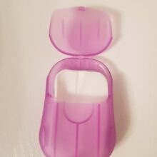 Our cases are made in five vivid colors: pink, orange, blue, purple, and yellow. Note that all soap sheets are the same scent and formula. Your order will contain a random assortment of the cases.